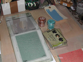 What else is going on chez H? Well, I got (thanks again to Carmen for the web link) some samples of fabric to try in the tattered florals die - they arrived this week - haven't done anything with them yet. The white looking one has an embroidered flower pattern on it. I ordered 5 (the maximum) but there's only 4 here - I may be going mad but I am sure there were all 5 when I looked originally - but maybe not, cos the "missing" one isn't hanging around. I can't find the web address at the moment but if anyone wants it let me know and I'll hunt it out.